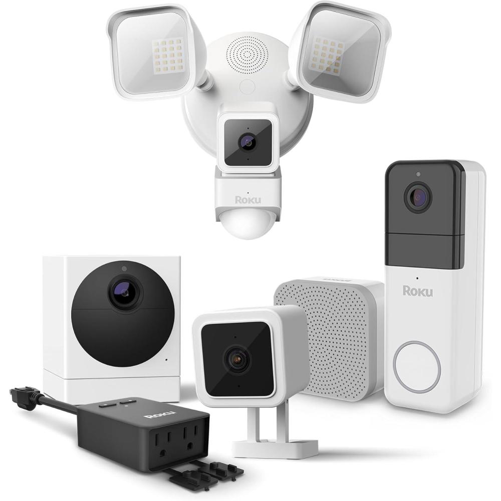 Set up your smart home: This Roku bundle includes 1 Outdoor Wired Camera, 1 Wire-Free Doorbell & Chime, 1 Outdoor Camera, 1 Floodlight Camera, and 1 Outdoor Smart Plug.